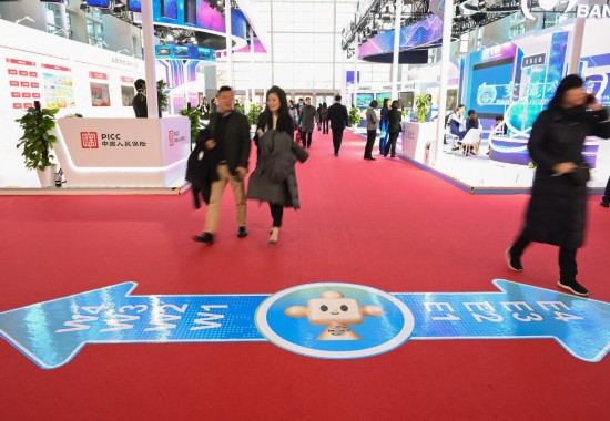 11月29日,在链博会会场随处可见带有“链氪”形象的道路导引标识。